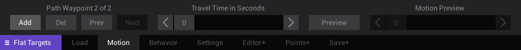 Since you’ve already set the path for the first target, we’ll go a little faster here. Set the first waypoint to have a Distance of 25 feet and a Horizontal value of -10. Create a second waypoint and give it a Horizontal value of 10.
